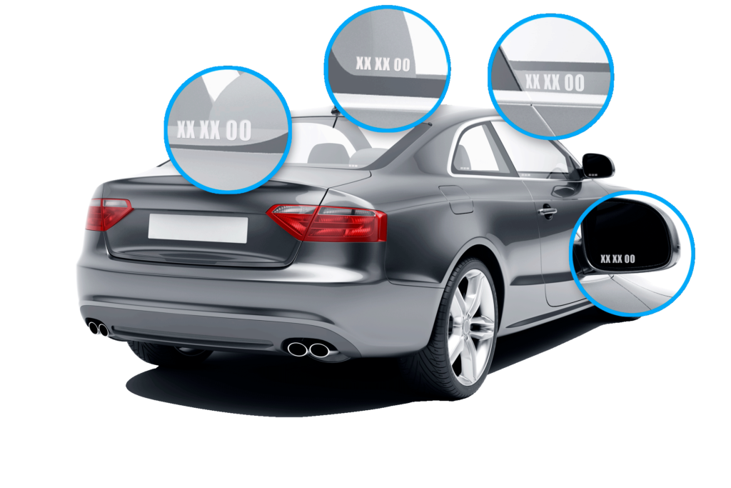 Todos los vehículos motorizados matriculados en Chile, tanto nuevos como usados, deben grabar su patente en los vidrios y espejos laterales.