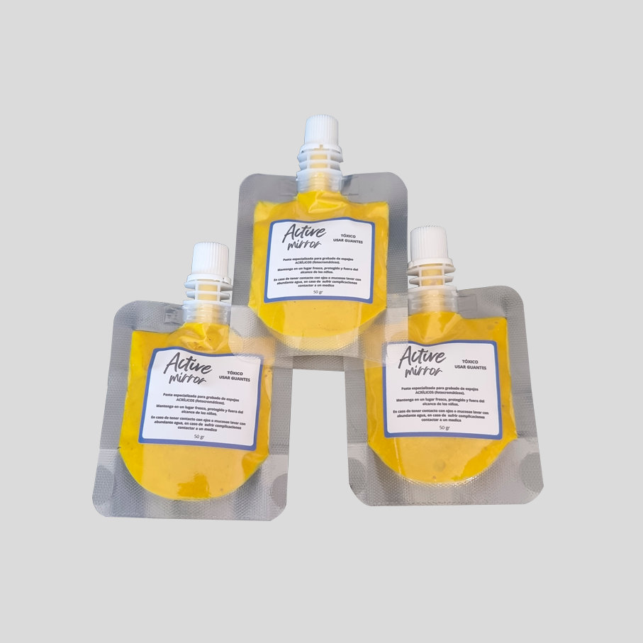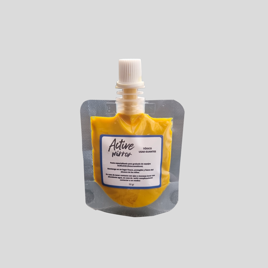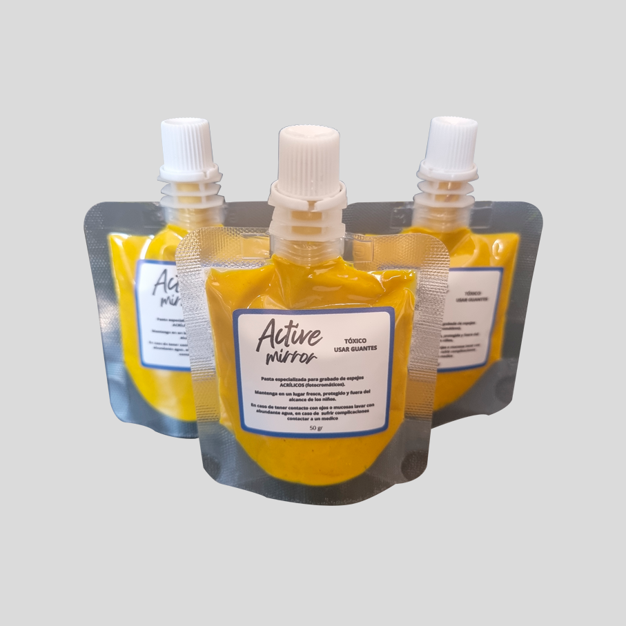 - Pasta ácida específica para el grabado de espejos ACRÍLICOS, con un peso de 50 gramos.